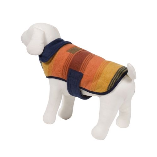 The Carolina Pet Pendleton National Park Grand Canyon Dog Coat will make your dog the most stylish pup on the block. It makes it easy to take your best friend along, even when the weather is chilly outside. It is made with polyester polar fleece that reverses to quilted cotton canvas. The velcro closure makes it easy to get on and off and allows you to get just the right fit.