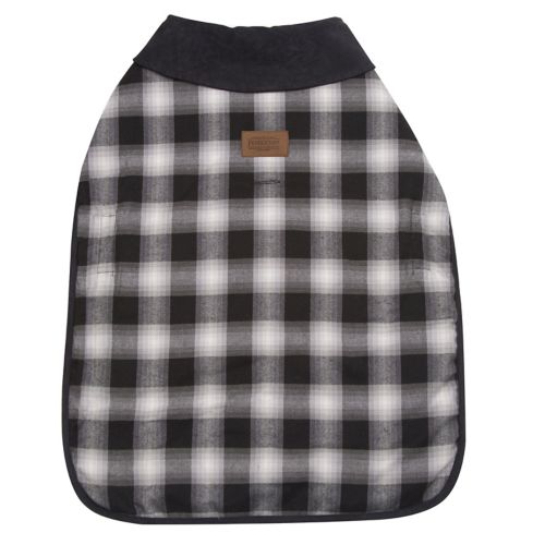 The Carolina Pet Pendleton Charcoal Ombre Plaid Dog Coat is a great combination of stylish and functional. It makes it easy to take your best friend along, even when the weather is chilly outside. This warm plaid dog coat reverses to quilted faux suede. An adjustable velcro belt makes it easy to get on and off and allows for a custom fit. It is machine washable.