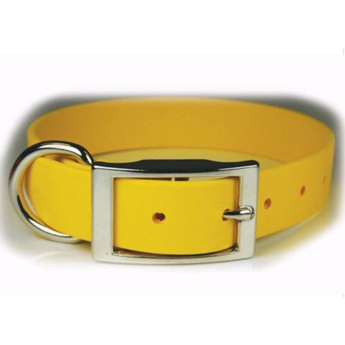 The Zeta Collar features the softness, feel, and look of leather while being significantly easier to care for. The collar is made of a polyvinyl-coated polyester webbing that can stand up to the toughest of abuse. It has been substituted for leather in other industries as it is extremely strong, easy to clean, and water-repellant.