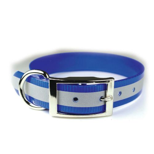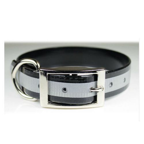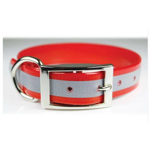 The perfect collar for doggies that love to be outside! Polyurethane coated nylon makes it soil-, odor-, and rot-resistant. Let your dog splash around in the water; he won't come back with a stinky, dirty collar. The reflective strip and vibrant color will keep your dog visible in low light and shaded woods for extra safety.