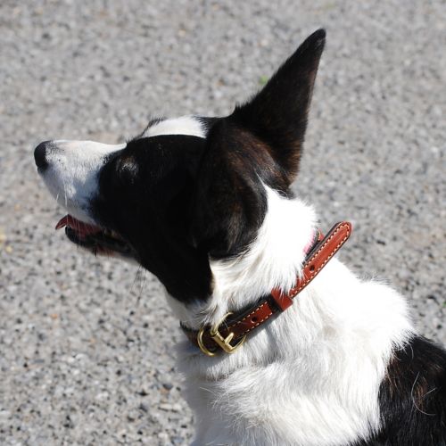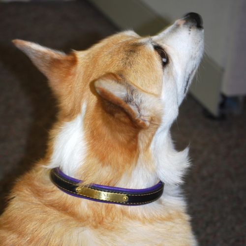 The Personalized Corgi Dog Collar is designed to fit their larger neck without adding bulk. The beautifully crafted leather is durable, and the ornamental brass plate enhances the beauty while being functional at the same time. The contrasting colors compliment each other. You can personalize up to two lines of text, with 25 characters per line. A brass buckle closure makes it easy to get the perfect fit.