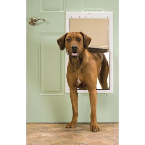 The PetSafe® Plastic Pet Door gives your pets the freedom to let themselves in and out without needing your assistance each time. Featuring a paintable frame to match any décor, the soft, flexible tinted flap seals securely to insulate and protect your home’s interior temperature. The door comes with a snap-on closing panel to use during those times when you do not want your pet to use the pet door or during inclement weather.