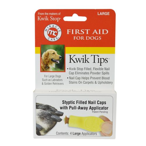 Kwik Stop Kwik Tips for Dogs are great to have in case of an emergency. These styptic-filled nail caps provide a unique, convenient, no-mess method to help stop minor bleeding fast. Filled with the Original Kwik Stop Powder, each single-use cap also helps to relive pain and start the healing process. They're perfect for first aid kits, travel, hunting, dog shows, groomers, veterinarians, and everyday use.