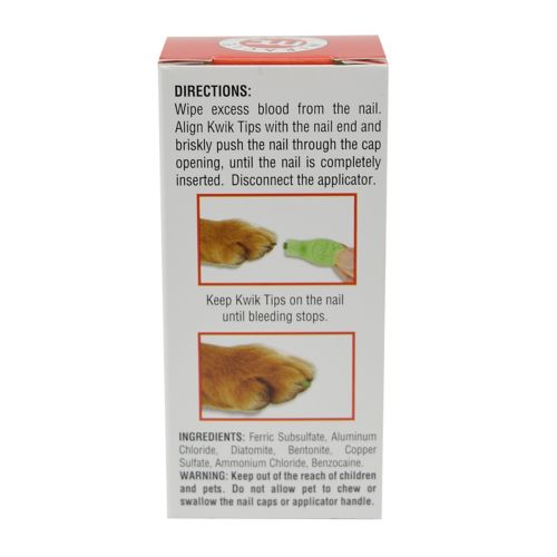 Kwik Tips are ideal for groomers and veterinarians, as well as just to keep on hand in the household. These styptic filled nail caps provide a unique, convenient, no-mess method to help stop minor bleeding fast. Filled with the Original Kwik Stop Powder, each single-use cap also helps to relive pain and start the healing process. They're ideal for first aid kits, travel, hunting, dog shows, and everyday use.