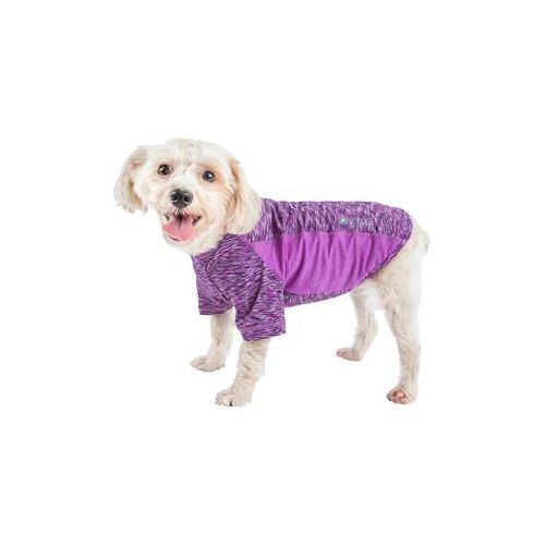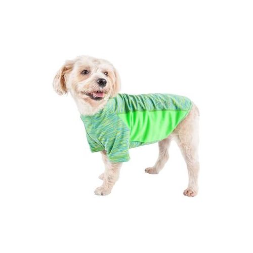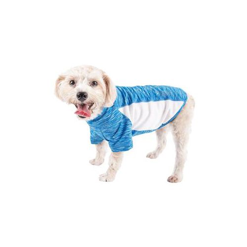 The Pet Life Active Warf Speed Dog Tee features a yoga-like complex performance structure. It is comprised of premium blended stretchy fabrics with a sided strategic ventilation system with breathable Micro-panels that focus at the source of perspiration to help maximize breathability during movement. It features 4-way stretch construction that moves better in every direction with a customized fit that's further than next to skin or fur without the squeeze and won't bunch up. The top layer features a specially formulated stretchy elastic and breathable performance micro-fibers that are also lightweight and stretchy. Features quick-drying properties that dries really fast that repels body moisture or sweat while offering Anti-Odor technology that assists with odor causing microbes. The Warf-Speed T-shirt is also UV Protectant against the suns harmful rays and fitted perfectly to help assist with containment of shedded hairs. Design features Dual Reinforced stitching at every seam for longevity and durability with a pull-over design for easy on and off access and reflective-taping for added night visibility.