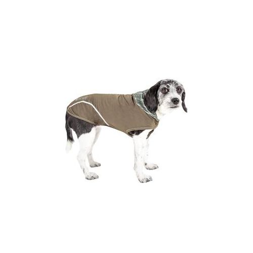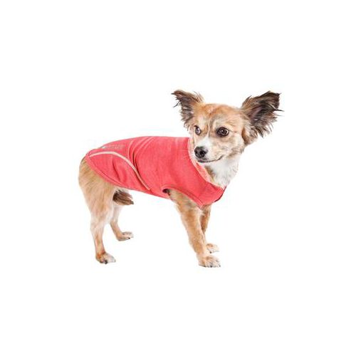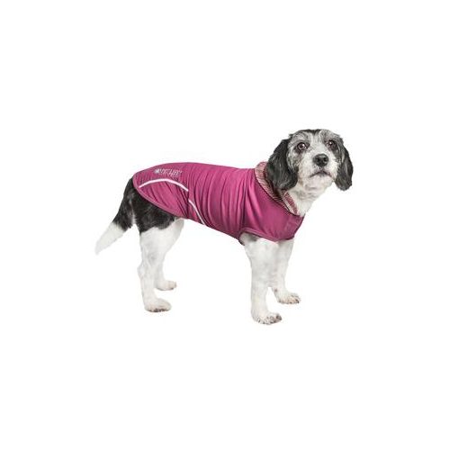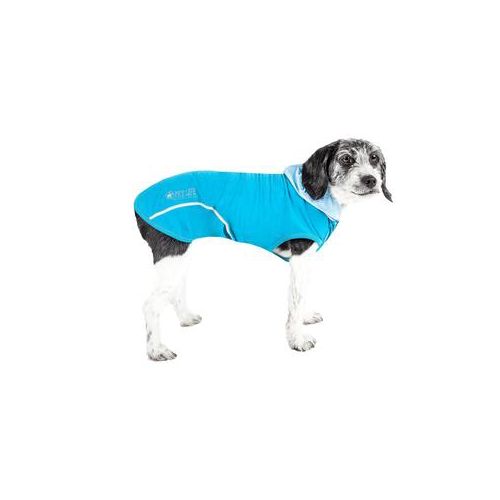 The Pet Life PullRover Dog Tank Hoodie features a cutting-edge, innovatively engineered, multi-blended micro-fabric with high stretching properties. When fused together, this material offers higher levels of permeability, breathability, and stretch ability. It features a 4-way stretch weaved construction that moves better in every direction with a customizable tapered fit without the squeeze and won't bunch up. The material is extremely lightweight and features quick-drying properties that both repels perspiration and dries really fast while offering anti-odor technology that prevents odor causing microbes, this material won't chafe or stick to skin or fur. This Hoodie also offers UV Protection against the suns harmful rays and fitted perfectly to help assist in containment or collection of shedded hairs. There is dual reinforced stitching at every seam for durability. The design also features an accented super-thin second skin stretchy pull-over hood with accented buttoned trims and reflective taping for added night visibility.