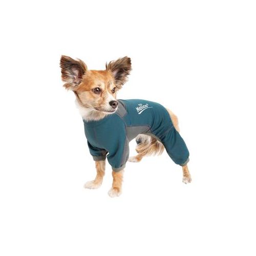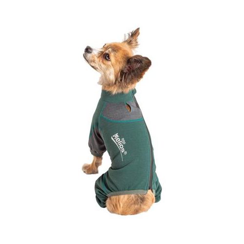 Helios Rufflex Dog Warmup Tracksuit was developed with premium Comfort and Flexibility in mind. The entire body features a specially configured medium-weight elastic material that both cools and warms the body for year-round for year round temperature maintenance. This specially blended fabric features high-level properties of flexibility for unrestricted Mobility and is also extremely breathable and permeable. The Exo-shell features 4-way stretch construction that moves in every direction. The Rufflex tracksuit also features banded elasticity around the sleeves and across the body for a nice almost tapered relaxed fit with added room for growth. It features dual-reinforced stitching at every seam for durability with added reflective taping for night protection. Additionally, it has quick-drying technology that dries rapidly while offering anti-odor technology that prevents odor causing microbes. It assists with UV Protection against the suns harmful rays and fitted perfectly to help assist in containment or collection of shedded hairs. It also has a fashion collar with a leash-slit along the back.