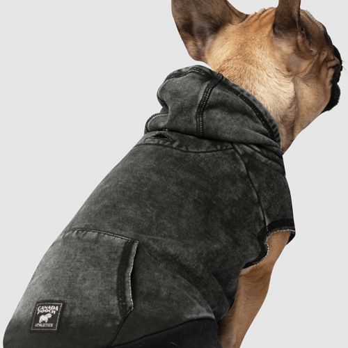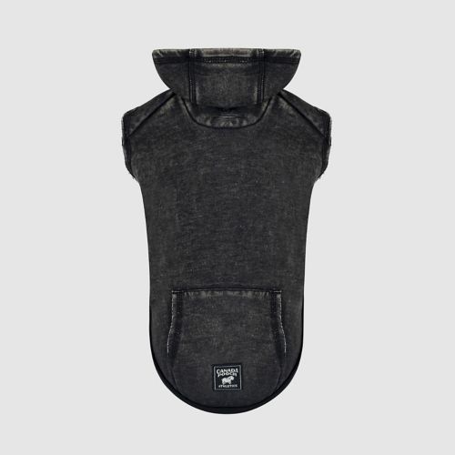 The Canada Pooch Grey No Authority Dog Hoodie will be a great addition to your dog's wardrobe. The soft fleece is lightly brushed to give it a weathered look. It has a hood with fabric lining for those cooler days. A kangaroo pocket adds to the style and function. There is a slit for easy leash attachment.