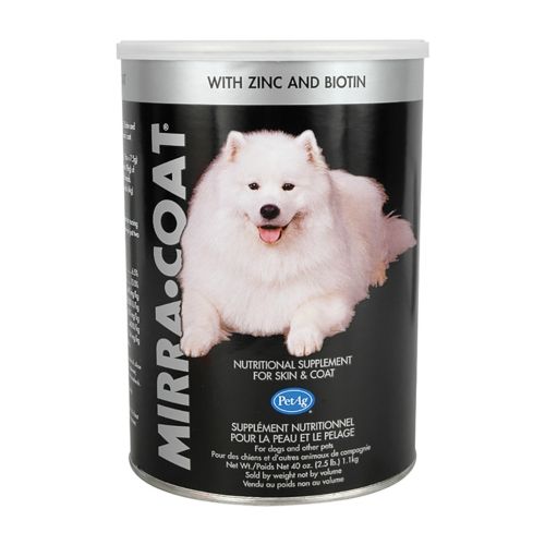 Mirra-Coat® is a blend of essential fatty acids, Vitamin A, B6, E, Biotin, and Zinc, all essential nutrients in helping maintain a healthy skin and coat. It is recommended for use as a concentrated supplement for dogs and other animals that need special attention to help control shedding, scratching, dull coat, and dry flaky skin. Use to aid in restoring the skin and coat condition after treatment for non-nutritional problems such as parasites, trauma and allergies. Improvements are seen within two weeks of use.