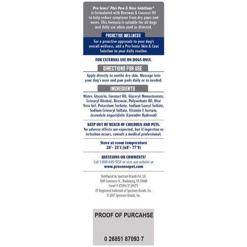 Pro-Sense Plus Paw and Nose Solutions is formulated with beeswax and coconut oil to help reduce symptoms from dry paws and noses. This formula is suitable for all dogs and daily use when used as directed. Apply directly to soothe dry skin. Massage into your dog's nose and paw pads daily or as needed.