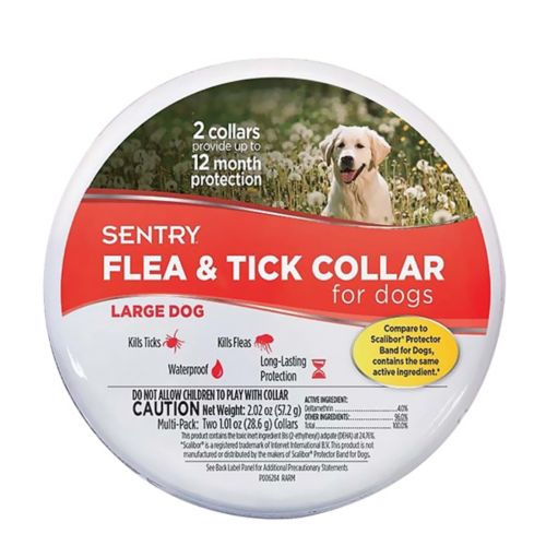 SENTRY's Flea & Tick Collar for Dogs provides long-lasting flea and tick protection. It has the same active ingredients found in Scalibor® Protector Bands for dogs and provides up to 12 months of protection.