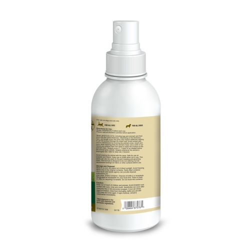 Avoid soaking the animal with the spray. Safe for use on puppies and kittens. Keep cap on bottle when not in use. This spray can also be used on the pet’s bedding and grooming tools. This formula is designed to be non-staining, but we recommend testing it on fabric or other surfaces before use.