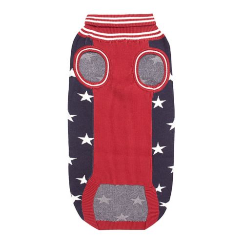 The Halo Royal Navy Knitted Dog Sweater is the perfect way to show that your dog is the star of the show. It is perfect for when the weather is cold and your dog wants to go outside or be taken for a walk. It will provide warmth and comfort. The sweater covers the dog's body and also includes neck coverage with the turtleneck top. A hole in the neck allows for easy leash attachment.