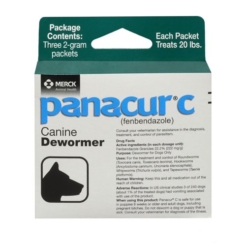 Panacur® C (fenbendazole) is an anthelminthic (dewormer) used in the treatment of certain types of roundworm, hookworm, whipworm, and tapeworm (Taeniid Tapeworms and Taenia Tapeworms) infections in dogs. It is used by veterinarians to treat other parasites as well.