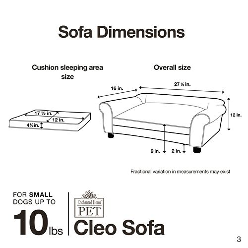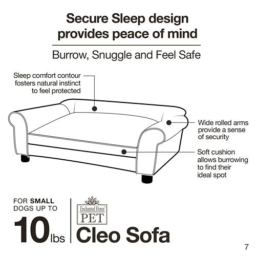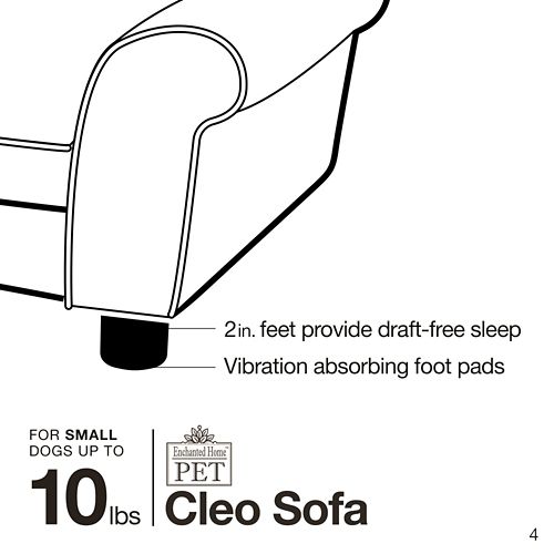 The Enchanted Home™ Pet Cleo Sofa Dog Bed is a great combination of style and comfort. It is an ultra plush pebble grain faux-leather bed, tufted with buttons and softly rounded arms, ideal for little dogs that love to lean or curl up when they sleep. It is fully upholstered of durable furniture-grade construction with a high-loft, milled foam cushion. A pocket on the back helps to keep your dogs favorite toys and treats close by.