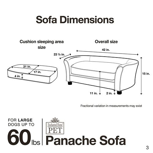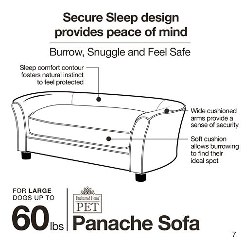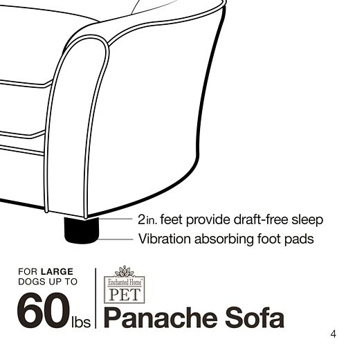 The Enchanted Home™ Pet Ultra Plush Panache Sofa Bed is a great combination of function and comfort. It is an oversized plush bed, perfect for dogs that like to lean or curl up when they sleep. Fully upholstered with a comfy, high-loft, milled foam cushion, it boasts durable furniture grade construction. The two-inch leg elevates the bed off the ground and keeps your pet draft free. A back storage pocket provides storage for your dog's favorite toys and treats.