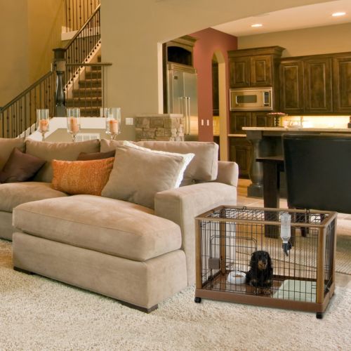 This beautifully crafted mobile pen has lots of high-end appeal and is loaded with safety features. For starters, it has a slide-locking system on the door and top, plus a lockable base and casters to ensure your pet is safe and secure in his/her "own" special space. Casters allow you to move the pen easily from room to room without lifting. The plastic base detaches easily for cleaning.
