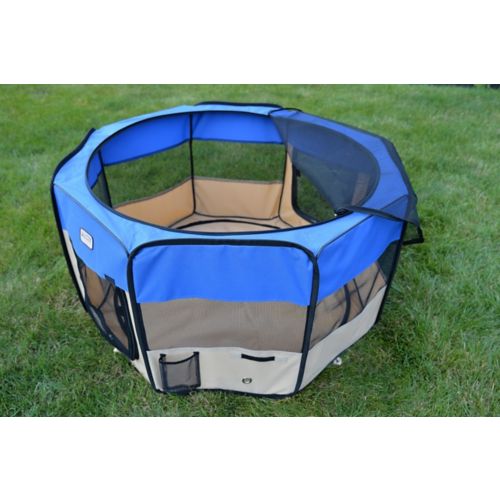 The Armarkat Portable Playpen is perfect for on the go or anytime. It holds one large dog or whole litters of puppies or kittens. Made of water-resistant, durable polyester fabric with mesh vents for air and visibility, it sets up fast and folds flat to go into the included carrier bag. A zip-off top allows easy access to pets inside, while an outside pocket provides storage for toys and treats. It is lightweight for outside or indoors, but tough enough for travel.