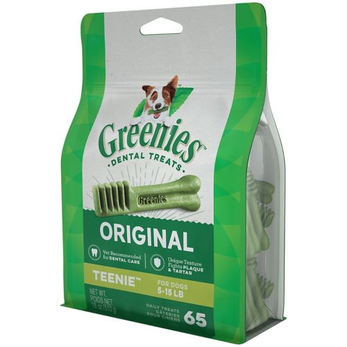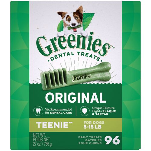Improve your dog’s dental disposition! Tasty GREENIES™ treats will remove plaque and tartar and reduce bad breath all while supplementing nutritional intake. Specifically engineered to be the right size and texture for your dog’s mouth, these delicious treats come in five different sizes. Easy on the gums and fun to eat, this healthy, beneficial snack is loved by dogs the world over. When fed daily, GREENIES™ Dental Chews are clinically proven to deliver four solutions for complete oral health care.