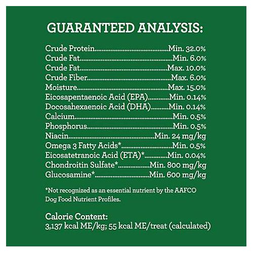 Calorie Content: 3,137 kcal ME/kg, 55 kcal ME/treat