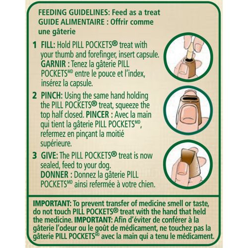 Take the headache out of medication time by placing your dog’s medicine inside this delectable treat sleeve and pinching the sides together. Your dog will never know that it’s medicine, only that they’re eating a tasty treat. Formulated for dogs, but can also be given to cats, these delectable pockets are made from human grade meats right here in the USA.