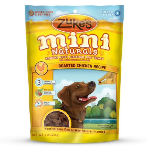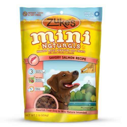 Zuke's Mini Naturals® Moist Dog Treats are packed with the taste of real USDA chicken, wild caught salmon, or peanut butter, while the fun-to-feed size keeps their tails wagging for more. And because Mini Naturals are only three calories, dog trainers agree it makes them the perfect treat for training. So now you can teach your dog to jump through hoops without making him too fat to fit through them.