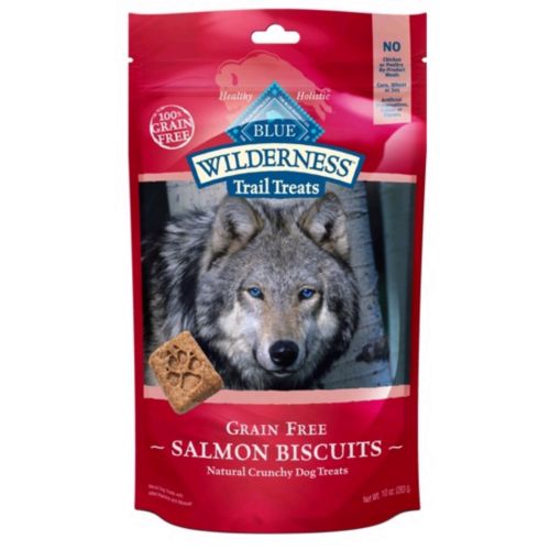 Blue Wilderness Trail Treat Biscuits are the perfect crunchy treat for your meat-loving dog. Wilderness Trail biscuits are made with only the finest natural ingredients, like salmon, turkey, potatoes, and flaxseed. And, like all Blue Wilderness foods, the Trail biscuits are 100% grain-free, so your dog can enjoy a high protein treat without any of the grains that contain gluten.