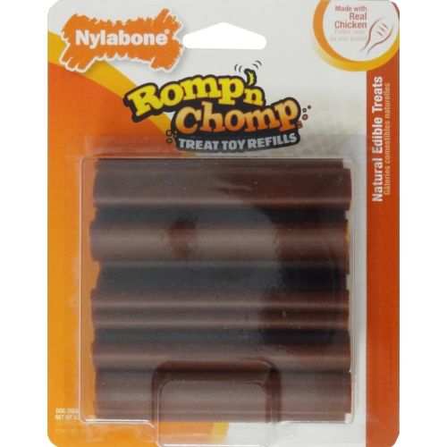 Romp'n Chomp treat toy refills are Made in the USA from natural ingredients. No added sugar, salt, artificial preservatives or colors. Delicious chicken flavor dogs will love. Great as an anytime treat as well.