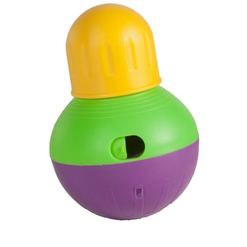 Fill this award-winning toy with food or treats for a playtime of epic proportion – and plentiful rewards. With a nudge of the nose or paw, the Bob-a-Lot turns and twists and spins, releasing well-earned kibbles through adjustable openings. Dogs will bounce and chase the toy everywhere, for a fun-filled session of food and exercise.