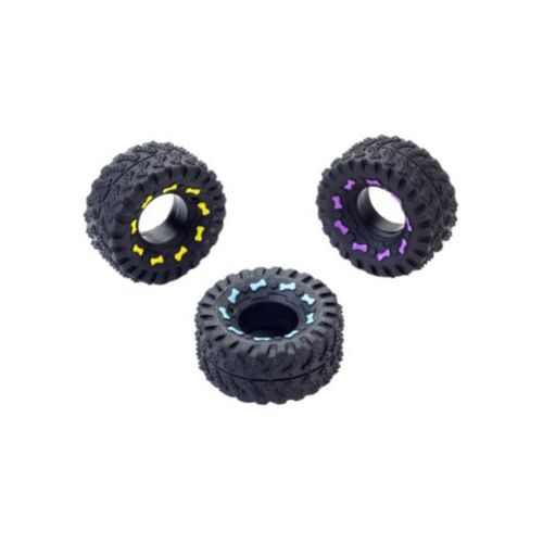 The Ethical Pet Products Spot® Spotbites™ Tough Tire™ Vinyl Dog Toy for Dogs is heavily textured to massage you dog’s gums while chewing. Your dog will also love hearing the fun squeaker every time he chews on it.