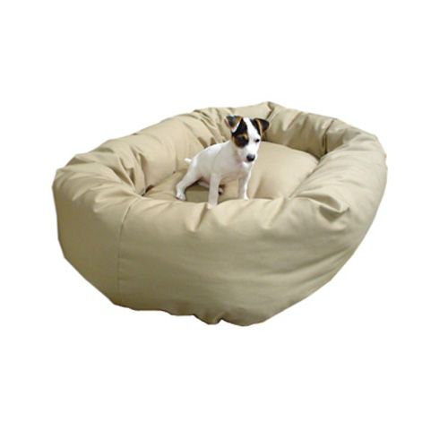 The bagel style dog bed from Majestic Pet Products is a super luxurious pet bed. It’s made of the finest materials available: a base of heavy duty water proof 300/600 Denier, the Bolster and Cushion are a durable faux suede and stuffed with a Super Premium High Loft Polyester Fiber Fil. Fully machine washable; just place the entire bed in a oversize washer on gentle cycle and air dry