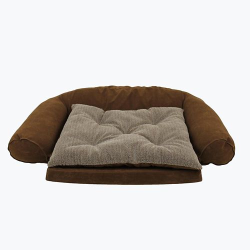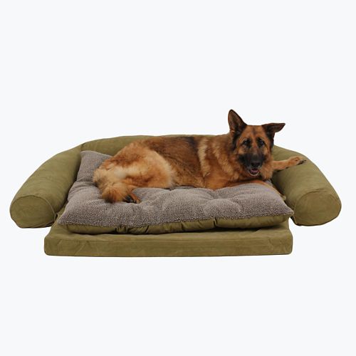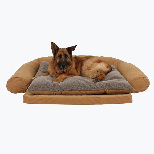 When you want to make sure your older pet can rest in comfort, the Ortho Sleeper Bolster Dog Bed will let both of you sleep easy. The bed is made of three inches of medical-grade orthopedic foam to conform to your dog’s weight and shape and relieve pressure on joints. The sleep surface is covered in a plush Sherpa for warmth and comfort. Velvet microfiber bolsters surround the bed for a couch-like design, and add extra support.