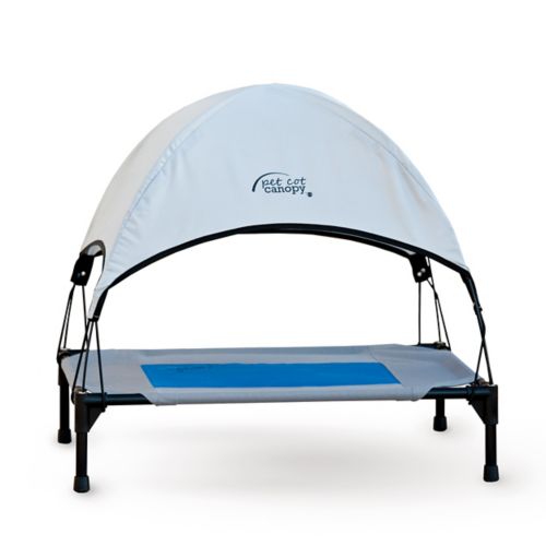 The Pet Cot Canopy by K&H Manufacturing is an easy, simple design. It shades any pet from harsh summer sunlight. Designed to attach to any of the K&H pet cots, it guarantees your dog will have a cool summer. The simple design just plugs into the corners of the cot and safely secures with bungee straps riveted in the corners.