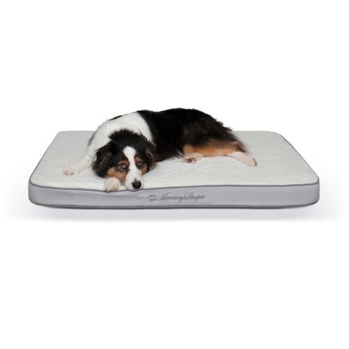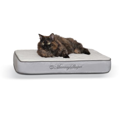 The K&H Manufacturing Memory Sleeper Gray Pet Bed is great for dogs and cats. It is recommended for indoor use. The real memory foam provides comfort and added benefits. It is great for aging pets. The thick foam makes it so your pet will never "bottom out". The cover is removable for washing.