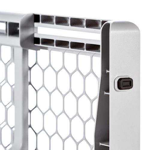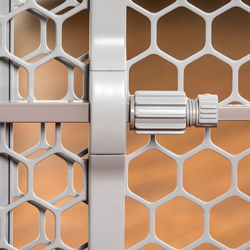 An essential tool for homes with small pets, the Carlson 23" Plastic Expandable Pet Gate is a convenient way to contain and protect both your pet and your home. Made of high quality plastic, the pet gate stands at 23" and is designed to easily step over. If the thought of putting holes in your walls makes you shudder, the pressure-mount system with rubber bumpers are gentle on your walls and make installation simple. Because door and hallway openings vary, the gate expands in seconds to fit openings between 26-42" wide. The gate features a lock and screw system to create the perfect pressure on the gate. To set up, grab both sides and expand to the desire width, lift the locking pin, moving it into place and securing into the open hole. Now just twist the plastic knob to adjust the pressure until the gate is safely secured against the wall.