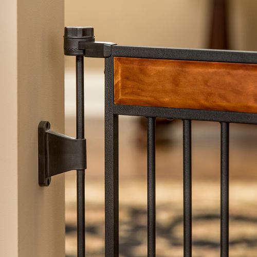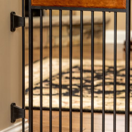 Mixing function with style, the unique Carlson Design Paw Arched Flexi Pet Gate is an essential tool for homes with pets. Designed to fit with the décor of your home, the chew-proof gate has a black steel frame with cherry wood accents. A unique gate, the hinged posts offer an amazing variety of shaping possibilities and can fit openings up to 76" wide.