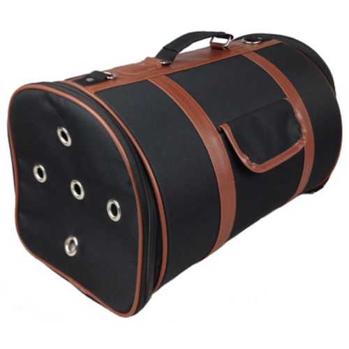 The Pet Life “Bark Avenue” Fashion Pet Carrier gives you and your dog the “executive” look and feel that you both deserve. Approved for airline travel,* this sleek pet carrier features a cylindrical design, made with heavyweight Dura-tough nylon and a high-impact, industrial plastic frame. Designed with dual side openings, mesh viewing panel, and silver accent grommets for ventilation, the Fashion Posh Pet Carrier has a side pouch with Velcro for storage, removable shoulder strap, top carry handle, built-in leash holder, as well as a removable, washable, fleece pad for maximum comfort.