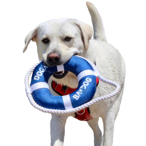 Inspired by an active coastal lifestyle with their dogs on the Chesapeake Bay, BAYDOG products are made for dog owners who want the best for themselves and their canine companions. The BAYDOG Fetch Ring Dog Toy is designed for lasting play. It is waterproof and buoyant, making it perfect for playing fetch with your water-loving dog. Attached rope edging is great for a game of tug-of-war. It is made from high-quality, durable, ballistic nylon for extended life. The soft filling is gentle on your dog's mouth, but sturdy enough for long-lasting play.