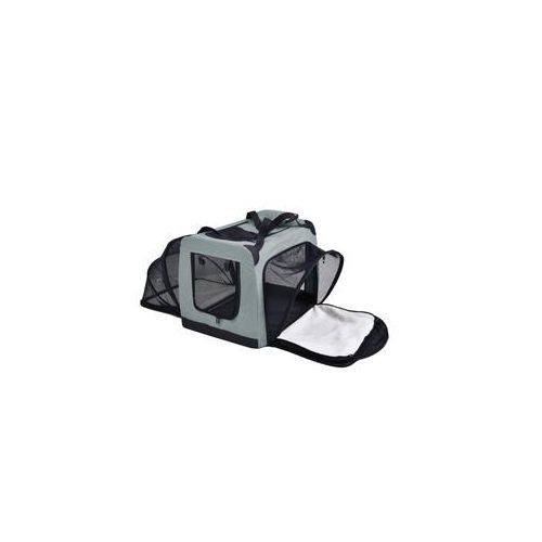 The Pet Life Hounda Accordion Pet Dog Crate is specially engineered with three times the lounging space. This soft folding crate features dual-sided zippers that open and expand on both sides like an accordion for a roomy triple lounging area experience with comfortable and breathable Sherpa-like removable resting pads that Velcro in place on each side. Both of these expandable sided mesh structures feature zippers for additional pet placement. The sturdy metallic frame completely folds, collapses and buckles closed into place and locks into place when opened. A zippered above-top pouch offers placement of belongings and zippered frontal and panoramic entrances for easy pet placement that zips open, rolls up and Velcros into place while offering complete ventilation and sunview all around. It's spacious enough for multiple pets and perfect for travel and outdoor areas.