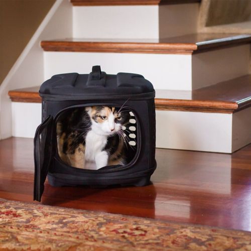 The Iconic Pet Deluxe Retreat Pet House is a fashionable and handy way to carry pets around or take them along with you when you travel. The collapsible design makes it easy to be stored when not in use. The Pet house is made of EVA plastic that provides excellent toughness. It is lightweight and easy to carry. The zip-up assembly system is very convenient and can be set up in no time. It provides visibility and ventilation from all sides. It comes with a washable plush mat that gives a comfortable place for your pet to relax. While traveling, this soft carrier helps keep your pet safe and confined and also provides them with security from the wild. It is an ideal choice for cats and dogs up to 15 lbs.