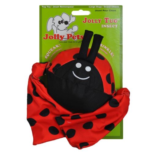 The new Jolly Pets Jolly Tug Lady Bug Dog Toy is made from durable Cordura nylon and comes in an adorable Lady Bug design. When both ends are tugged simultaneously, this adorable toy squeaks. Wings are designed with crinkle texture and sound for added enjoyment.