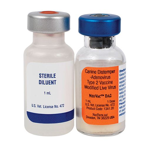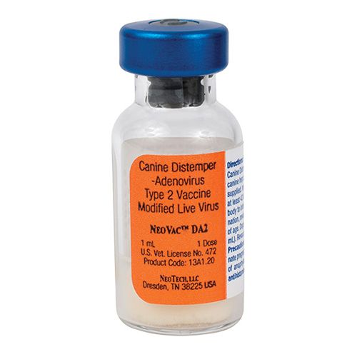 Neovac DA2 25 x 1 Canine Vaccine is a core vaccine that is used as an aid in the prevention of disease due to Canine Distemper Virus and Canine Adenovirus 2. This Modified Live Virus provides core protection against the most lethal and prevalent respiratory diseases of dogs.