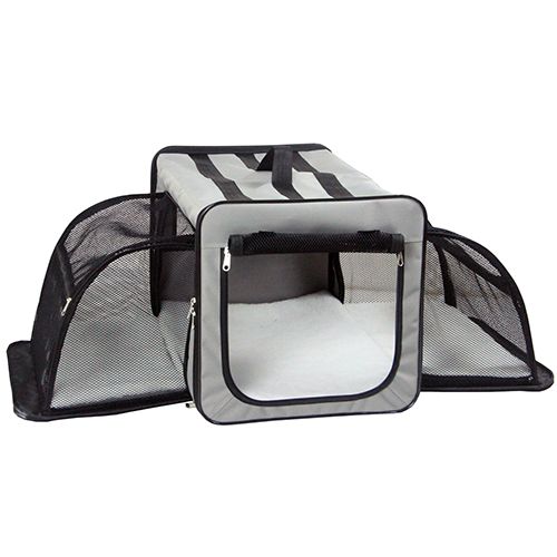 The Capacious crate almost triples in floor space by simply zipping opened the expandable sides.