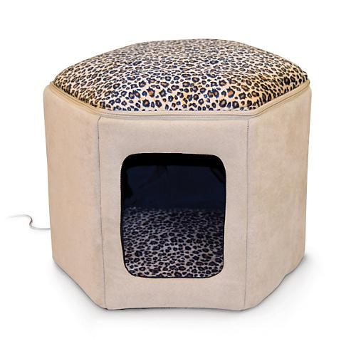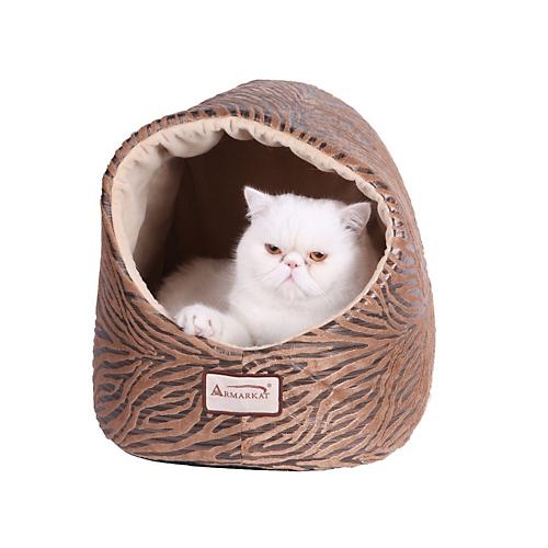 Armarkat Hooded Mocha/Leopard Pillow Cat Bed