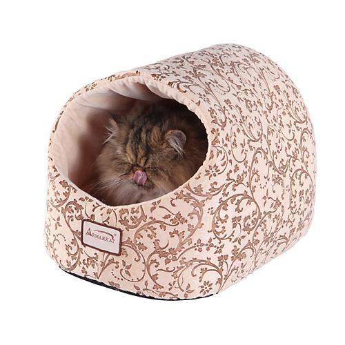 Armarkat Hooded Beige with Flower Pattern Cat Bed